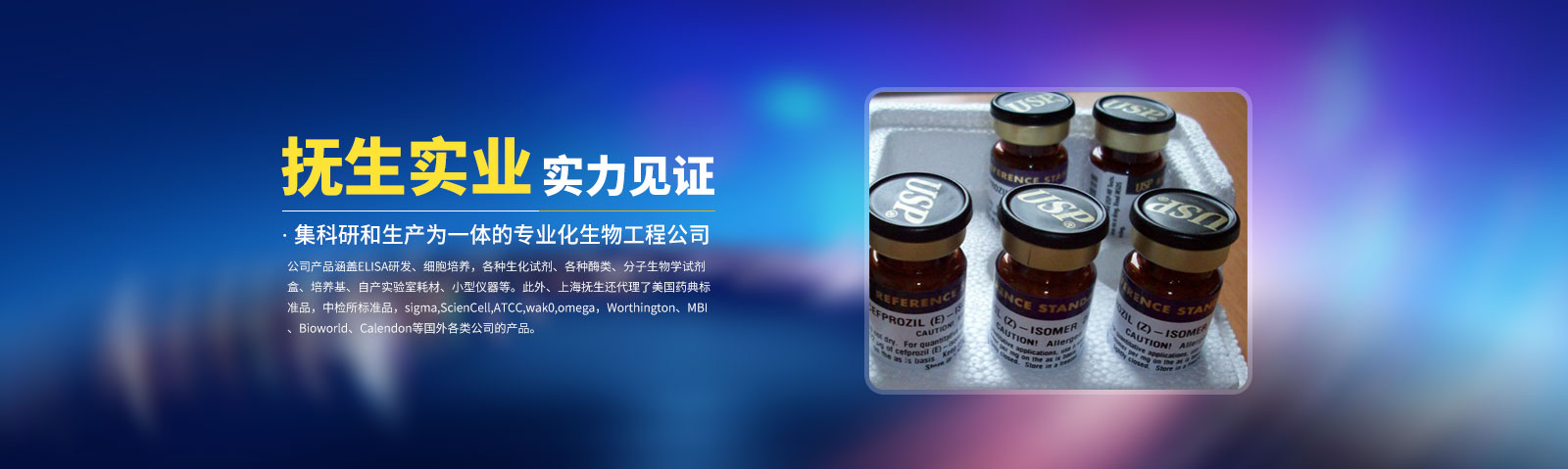 上海撫生實(shí)業(yè)有限公司(ShanghaiFushengIndustrialCo.,Ltd.,China)是一家生物企業(yè),主要從事免疫學(xué)、分子生物學(xué)和常規(guī)生化試劑的銷售。主營(yíng)產(chǎn)品:生化試劑、試劑盒、ELISA試劑盒、抗體、重組蛋白、生化檢測(cè)試劑盒、分光光度法檢測(cè)試劑盒、熒光定量PCR檢測(cè)試劑盒、細(xì)胞株、原代細(xì)胞、細(xì)胞培養(yǎng)基、標(biāo)準(zhǔn)溶液產(chǎn)品。代理并銷售進(jìn)口SIGMA試劑、abcam抗體、R&D抗體、CST抗體、ATCC細(xì)胞、BD公司、GE公司、賽默飛世爾公司產(chǎn)品。上海撫生實(shí)業(yè)有限公司(ShanghaiFushengIndustrialCo.,Ltd.,China)先后與天津中醫(yī)學(xué)院、復(fù)旦大學(xué)、上海交通大學(xué)醫(yī)學(xué)院、上海交通大學(xué)、華東師范大學(xué)、第二軍醫(yī)大學(xué)、南京大學(xué),暨南大學(xué),南京工業(yè)大學(xué),曙光醫(yī)院、華山醫(yī)院、瑞金醫(yī)院、上海有機(jī)研究所、中科院上海分院等多家單位建立了良好的合作關(guān)系。本公司可為您提供科研...